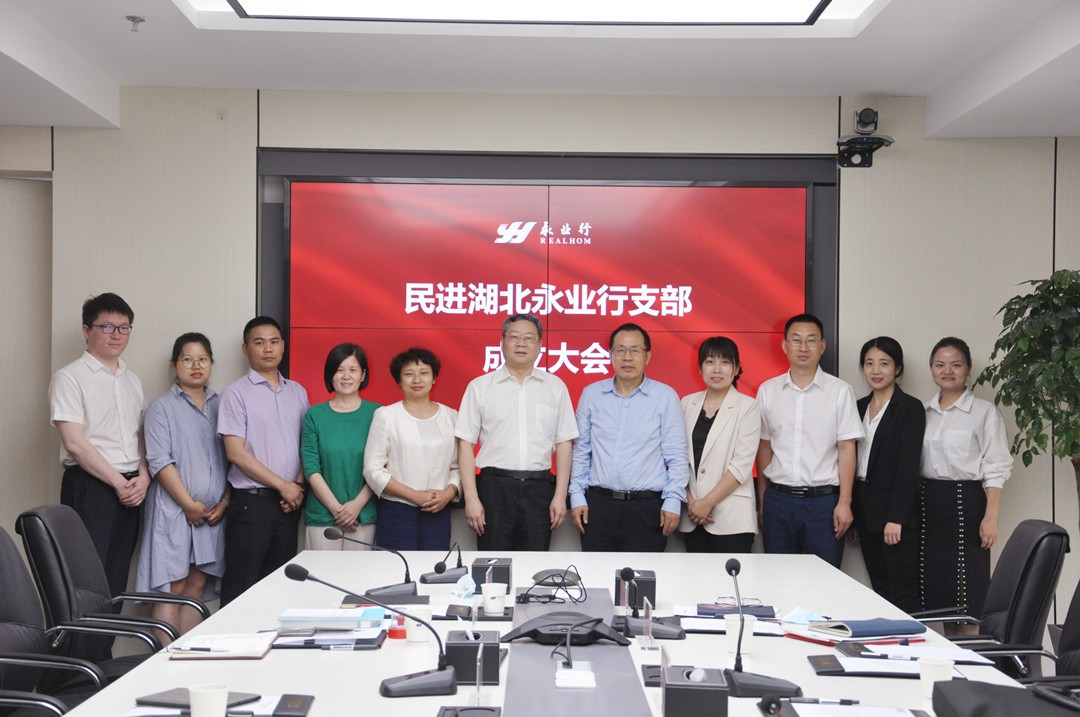 2022年5月25日,民进湖北永业行支部成立大会在永业行隆重举行。民进湖北省委会主委胡仲军、专职副主委周建元、秘书长张琼、组织部四级调研员李晋到场祝贺并指导工作。永业行党委书记、董事长潘世炳,副总裁吴学锋、程为民和其他民主党派代表等出席会议。 民进湖北永业行支部成立大会在庄重的国歌声中拉开序幕。根据中国民主促进会章程有关规定,经过选举,永业行助理总裁金建华当选为民进湖北永业行支部主委,杨凤和蔡凯分别当选为民进湖北永业行支部组织委员和宣传委员。 胡仲军代表民进湖北省委会对民进湖北永业行支部的成立表示祝贺。他首先肯定了永业行的行业地位和社会影响力,对