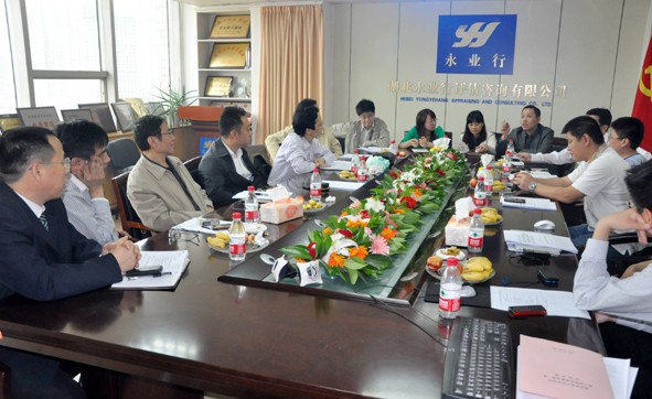 5月5日,武汉市住房保障与房屋管理局阎磊副局长、赵泽山处长及武汉市国土资源和规划局拆迁处吴世德处长莅临永业行,应邀参加武汉市房地产估价师协会(以下简称“协会”)常务理事会。 永业行总裁潘世炳作为协会2011年轮值副会长,与参会人员就今年的协会工作进行了讨论、交流,明确了工作思路和工作重点;赵泽山处长、吴世德处长和参会的常务理事分别发言,提出意见和建议;协会会长周茂棣作了总结发言;阎磊副局长分析了今年的房地产市场形势,对协会工作提出了建议,要求各评估机构在发展业务的同时加强风险防范。