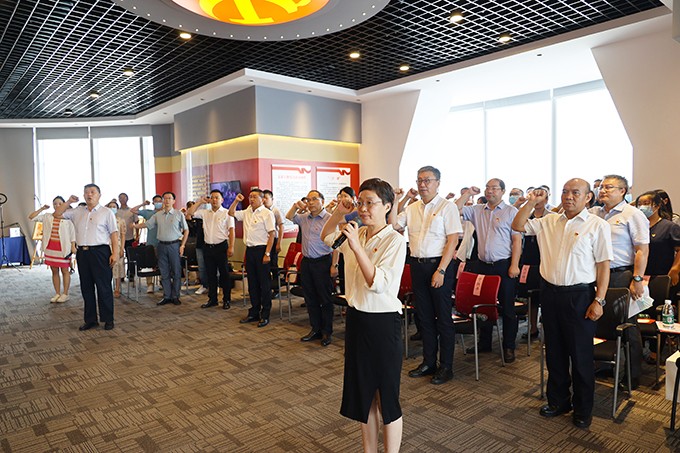 为庆祝建党100周年,热情讴歌党的光辉历程和丰功伟绩,进一步弘扬党的优良传统,2021年6月8日下午,“学百年党史 办‘两新’实事”武昌周周讲在武汉绿地中心开讲。武昌区委常委、区委组织部部长胡太荣,区委常委、区委宣传部部长王兴文等领导参加活动。永业行党委委员、副总裁吴学锋受邀参会并作主题发言。 活动由徐家棚街道工委书记、一级调研员、武昌滨江高端商务集聚区综合党委书记刘晓明主持。活动开始,由武昌区企业和人才服务中心党组书记、主任杨蓉领誓,与会人员集体重温入党誓词。武汉中共中央机关旧址纪念馆副馆长、武汉市党史宣讲团成员周静以《办好中国的事情关键在党》为主题,开讲特色党课。