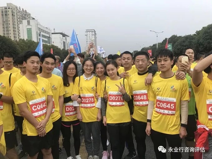 11月11日,2017年咸宁国际温泉马拉松开赛。为丰富员工业余文化生活,增强团队合作,展现公司员工奋发向上、努力拼搏的精神面貌,永业行咸宁分部14名员工组成跑团参加了本项赛事。 本次马拉松比赛按照国家 A 类马拉松赛事标准进行 , 分为全程马拉松(42.195公里)、半程马拉松(21.0975公里)、微型马拉松(6公里)三个级别。永业行咸宁分部参加半程马拉松的李松涛、蒋杰、彭栋、陈传锐等7名队员,自人民广场起点出发,一路经过咸宁大道、东外环公路、旗鼓大道、金桂路、银桂路,行程21.0975公里,顺利到达位于双鹤路的终点。比赛